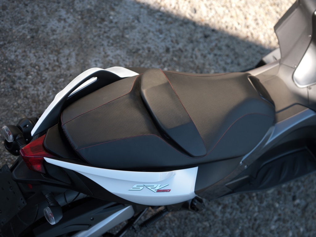 Комплектация Aprilia SRV 850 ABS оснащена вариаторной коробкой передач, 0.8 литровым двигателем (76 л.с.). Стоимость данного скутера составляет 900 000 руб.